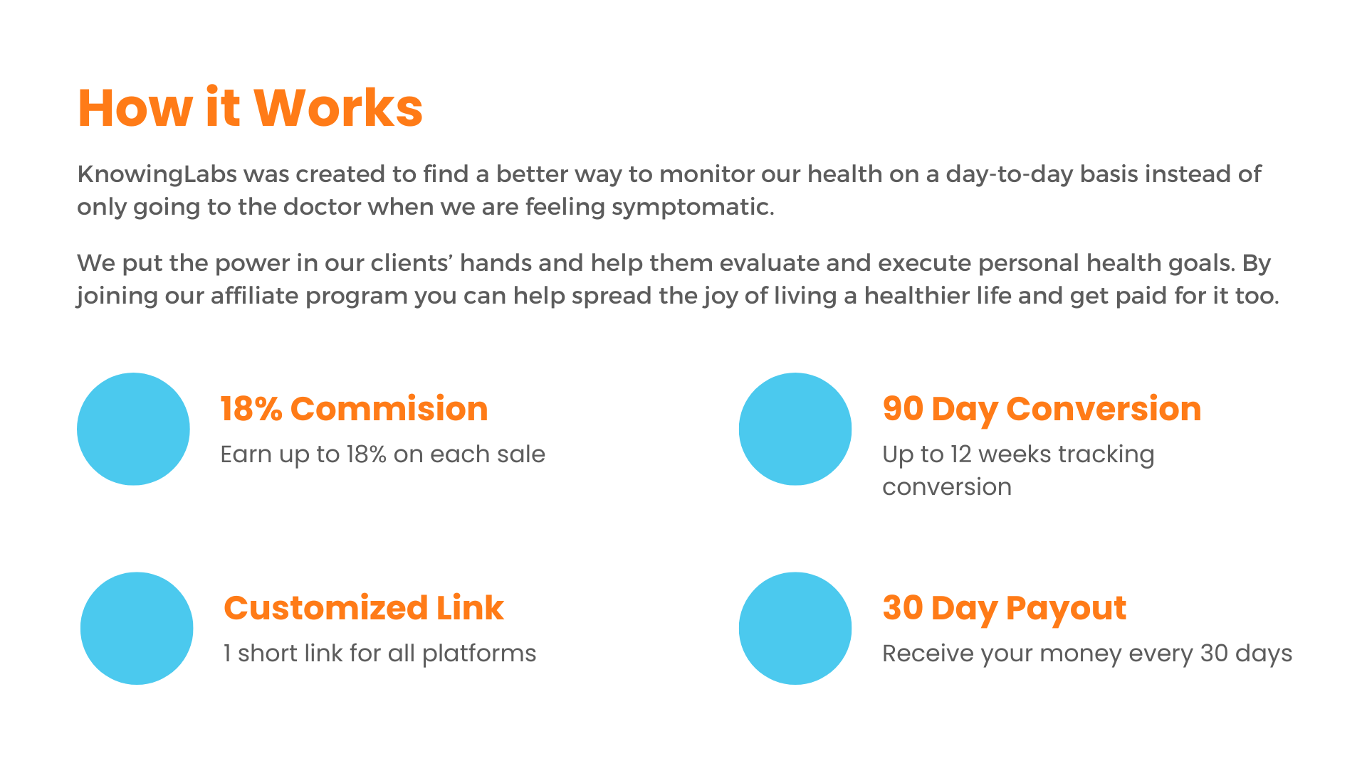 Do you have a passion to help others improve their health and lifestyle? Join the KnowingLabs affiliate program today and earn money while helping others.